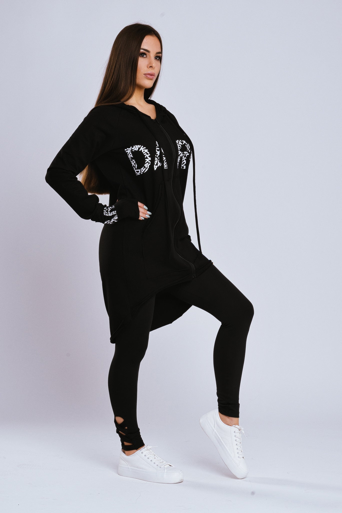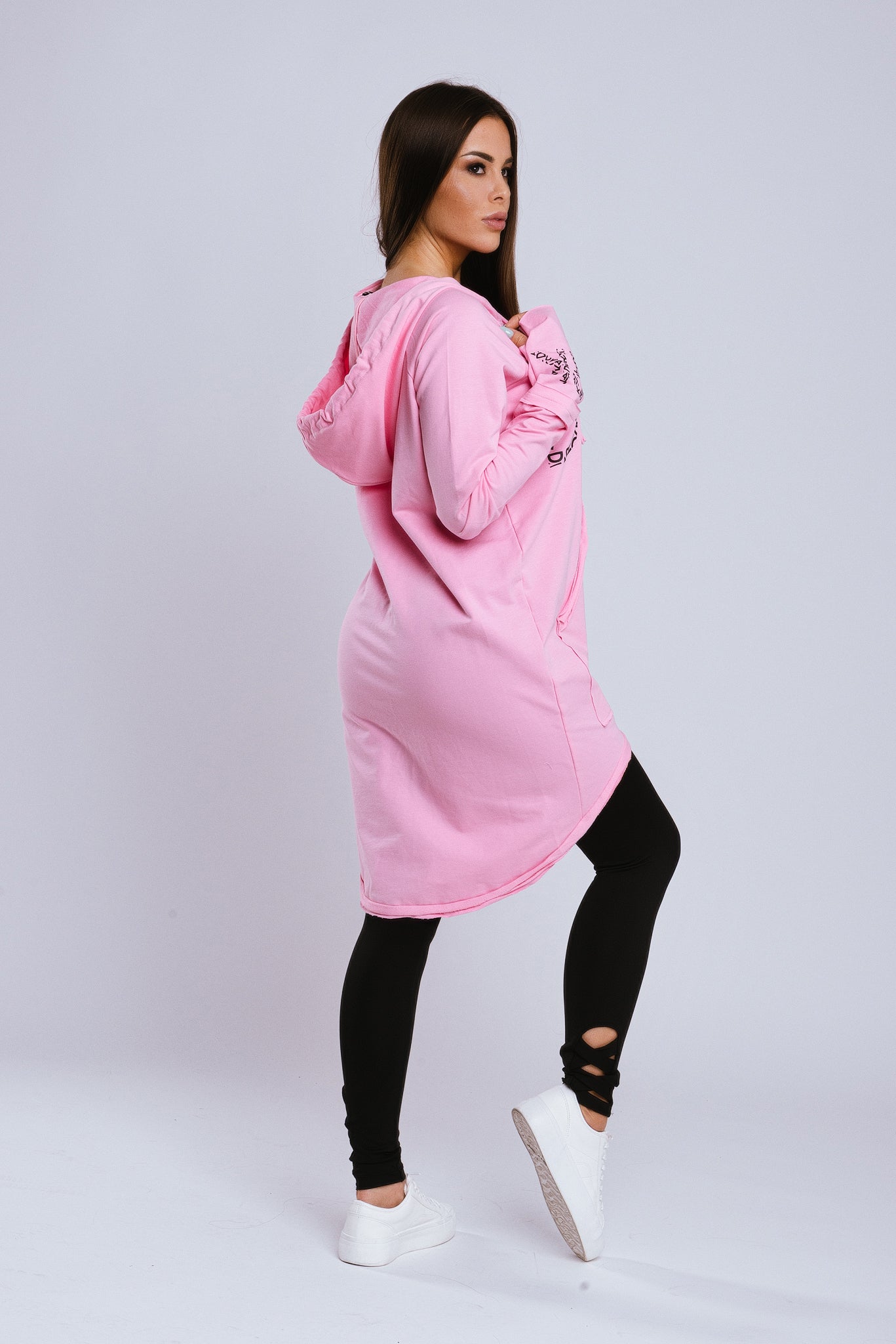 Egy igazi belebújós! Ha mindig trendi és kényelmes akarsz lenni a lezserebb napokon is, Leóna tunikánk a neked való darab! Csajos szabásvonal, egyedi nyomott minta, kapucni és kenguruzseb! A nőiesség és a praktikum csodás találkozása! Ezt a cipzáros tunikát két színben készítettük el neked! Anyagösszetétel: Meleg hatású, belül bolyhozott, légáteresztő melegítő anyag. 95% pamut 5% elasztán. A modell S méretet visel.